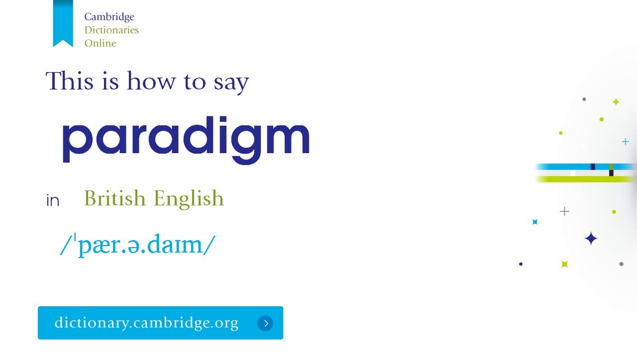 View American English pronunciation of paradigm. This is the British English pronunciation of paradigm. Word Origin late 15th cent.