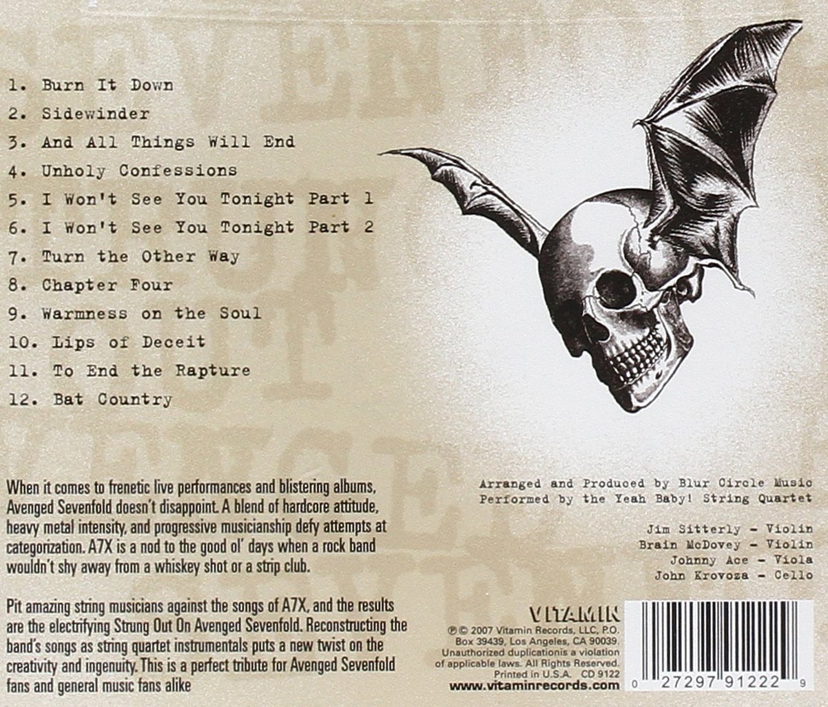 Find album reviews stream songs credits and award information for Strung Out on Avenged Sevenfold. Bat Wings and Broken Strings 2007. Vitamin String Quartet Album.